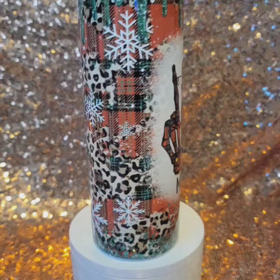 Merry Christmas Skeleton Hands Skinny Tumbler with Colored Lid