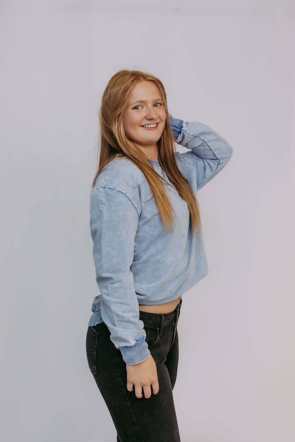 A bold acid-wash in cobalt and fuchsia, this sweatshirt turns loungewear into a statement. Soft, oversized, and effortlessly cool, The Edge Washed Sweatshirt adds a pop of edge and color to your fall lineup.